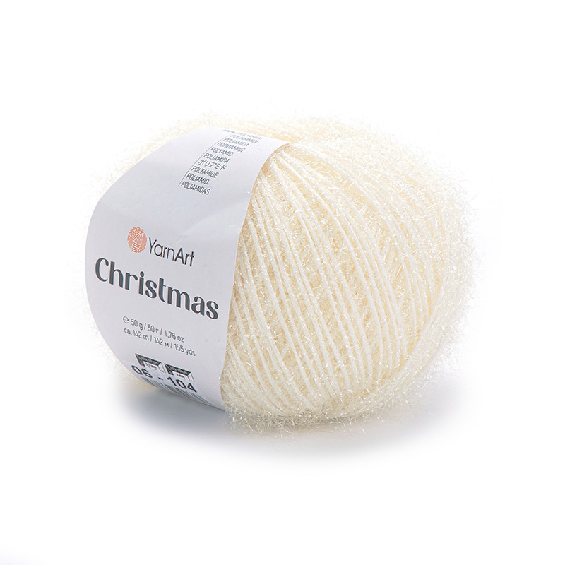 YarnArt Christmas to sezonowa włóczka/kordonek specjalnie stworzona do wykonywania świątecznych ozdób i dekoracji. Posiada w składzie 100% poliamidu i posiada połyskujące włoski, jest na tyle sztywna że robótki zachowują swój kształt bez ich krochmalenia. Włóczkę można również wrabiać z innymi włóczkami tworząc efekt połyskującej nitki.