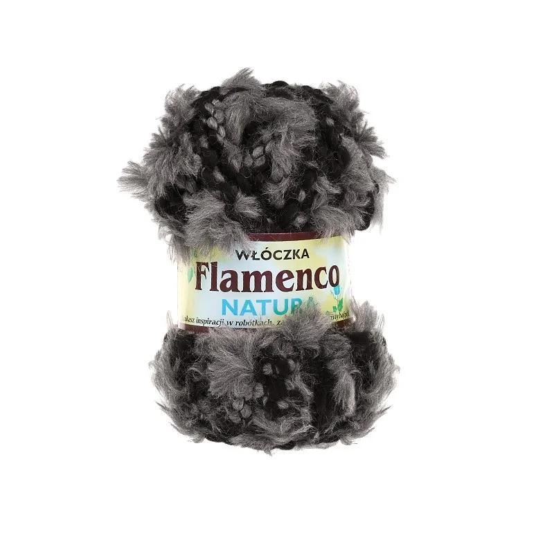 Wielokolorowa, puszysta i kosmata włóczka na ciepłe ubrania, szczególnie szale. Przyjemna w dotyku.
