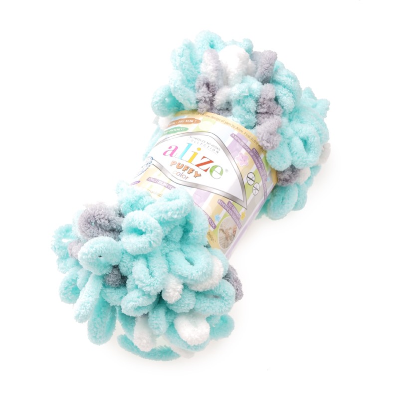 Gruba włóczka z delikatnej mikrofibry uformowanej w pętelki, dzięki czemu do robótki nie potrzeba żadnych narzędzi, oprócz swoich palców. Doskonale nadaje się do robótek dziecięcych oraz do nauki dziergania. Wersja wielokolorowa.